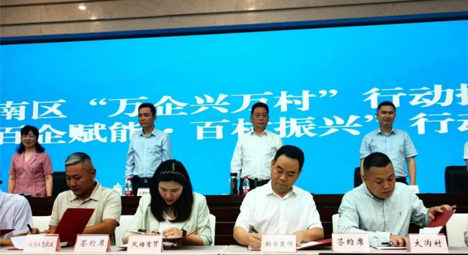 2023年6月2日上午,巴南區召開了萬企興萬村行動推進會暨百企賦能、百村振興行動工作會,巴南區委常委、統戰部部長徐江海出席會議并講話。重慶瀚方裝飾工程有限公司積極響應號召,與圣燈山鎮大溝村進行結對共建,公司總經理譚小平先生與大溝村支部書記文鋼同志現場簽訂共建協議。作為巴南區建筑業商會副會長的譚小平先生,代表商會舉牌認養兔、豬、雞鴨等畜牧以及認領稻田、蔬菜等農作物,用實際行動支持萬企興萬村的推進。中